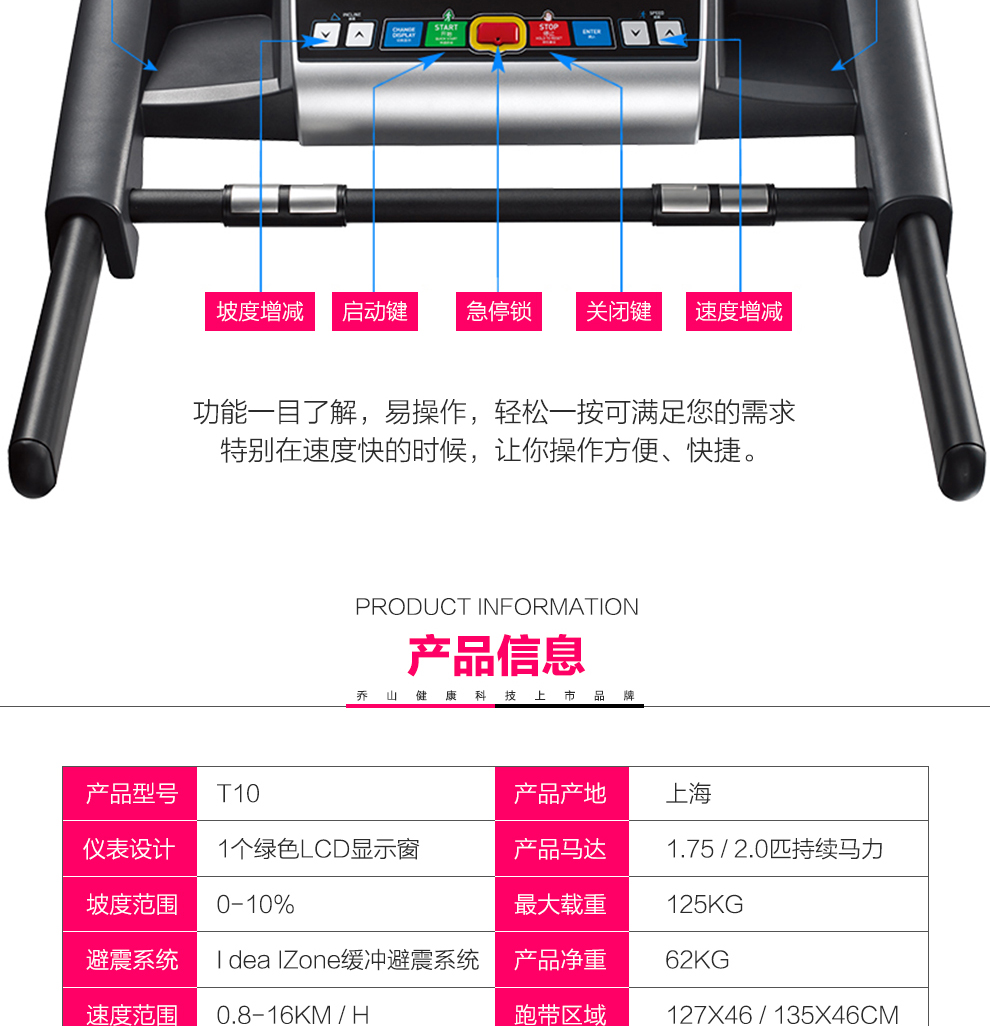 • 產(chǎn)品名稱:?jiǎn)躺剑↗OHNSON) 美國(guó)喬山跑步機(jī) 家用靜音健身器材可折疊 新品T10 送貨安裝